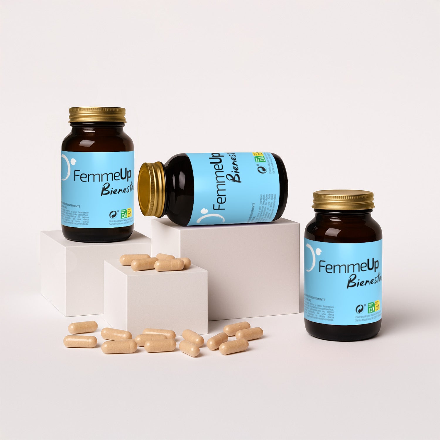 FEMMEUP BIEN-ÊTRE a été formulé avec des ingrédients soigneusement sélectionnés pour promouvoir l'équilibre émotionnel, la relaxation et le bien-être mental. Sa combinaison unique d'extraits naturels et de vitamines essentielles travaille en synergie pour vous soutenir au quotidien, notamment lors des périodes de stress ou de déséquilibres hormonaux.