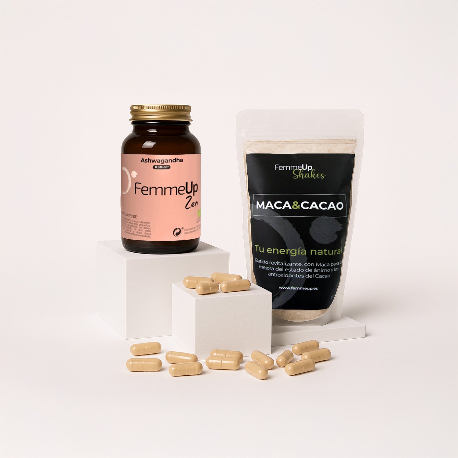 -FemmeUp Zen. Formulé avec une plante adaptogène de grande pureté, il aide à lutter contre l'anxiété et le stress. Chez les couples cherchant la fertilité, le stress peut être un obstacle. FemmeUp Zen, avec Ashwagandha écologique KSM-66, aide à la fertilité.
